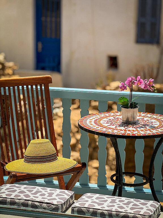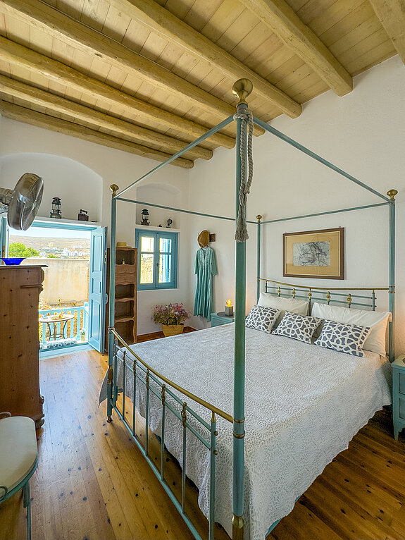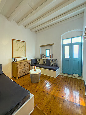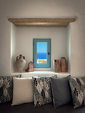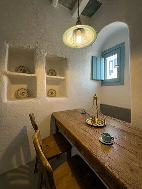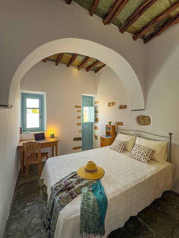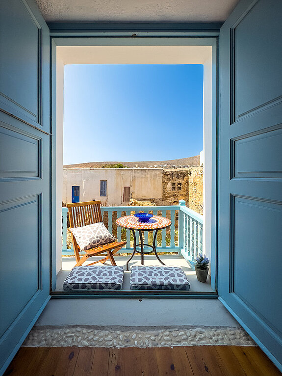 THE highlight of our vacation home are the two unique, breathtaking viewing terraces. On the island and in the Castro there are no other such exposed, private terraces directly in the steep view of the old Castro. From here you can enjoy panoramic views over the Aegean that will take your breath away. Whether at sunrise or under the stars, this will quickly become your favorite spot. The house is located in the old Castro on the edge of the cliff and from the two terraces there is a 200-meter drop. The natural force of the Agais is particularly noticeable here. On a clear day, you can see the islands of Paros, Antiparos, Sifnos and Siros directly from the balcony. In the past, approaching ships were spotted here first.